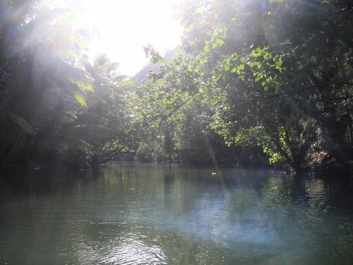 After anchoring in Raiatea we found a secluded island stream coming down from the mountains that
