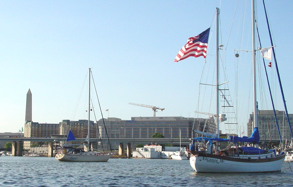 We got a lucky break on a saturday night, no less, and squeaked in with 2 other sailboats at 10:30pm.This meant we got to sail into DC and anchor