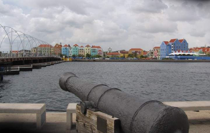 | Further southwest, we stopped in Bonaire for a few days to walk around and visit the village. This stop was best remembered by the guys as a terrific place to dive for 2 days and 4 trips. Chuck said it was the best diving he'd ever had. The ladies enjoyed shopping and relaxing after snorkeling a bit! Afterall we had done laundry all day, we deserved it! We all had a nice traditional thanksgiving dinner out with 25 other cruisers. Diving is about all there is to speak of here, but there are many who come for it. After Bonaire we traveled about 30 miles to Curacao, our next stop. [cur-a-sau]. | Along with Bonaire and Aruba, Curacao is a Netherlands island [Dutch traditions]. Actually, Aruba is independent now. To us that meant it was really clean and tidy after the more "casual" Venezualan and Caribbean locations. We found great food shopping and terrific cheese!!! We provisioned well for Columbia where, later, we found food more expensive with fewer selections. Curacao was filled with cruisers in Spanish Waters anchorage. We would bus to Frederickstead and shop in pastel markets and at the floating Venezuelan fresh produce market [off the side of boats]. They bring produce here from the mainland to sell. |