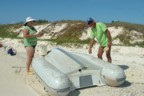 | The Roques and The Aves are both small groups of islands in sparkling water, often surrounded by coral reefs. They offer many lovely ancorages and often fisherman come by to sell or trade for fish and lobster. We'd left the Venezuela mainland in early November and we usually just stayed a day or two in each anchorage as we journeyed on. What yummy meals we had with the crew of "Complicite", the other sailboat we were traveling with. Ray and Mirielle are terrific "fisherfolks" themselves and often shared their catch. We actually catch fish sometimes, too....just a small Mahi-mahi this trip. | The "Aves" group are a bit further southwest than the "Roques". They offer good stops as we make our way to Columbia for December. The Aves are renound for the thousands of "redfooted boobies", colorful birds that roost in the mangrove trees. Their chicks are white and fluffy and about the size of a small chicken. We set out early in the dinghy, slowly rowing under the trees on the shore, looking up at thousands of boobies. Their beaks are bright blue. We also enjoyed great snorkeling sites in these islands when the wind was calm enough. |